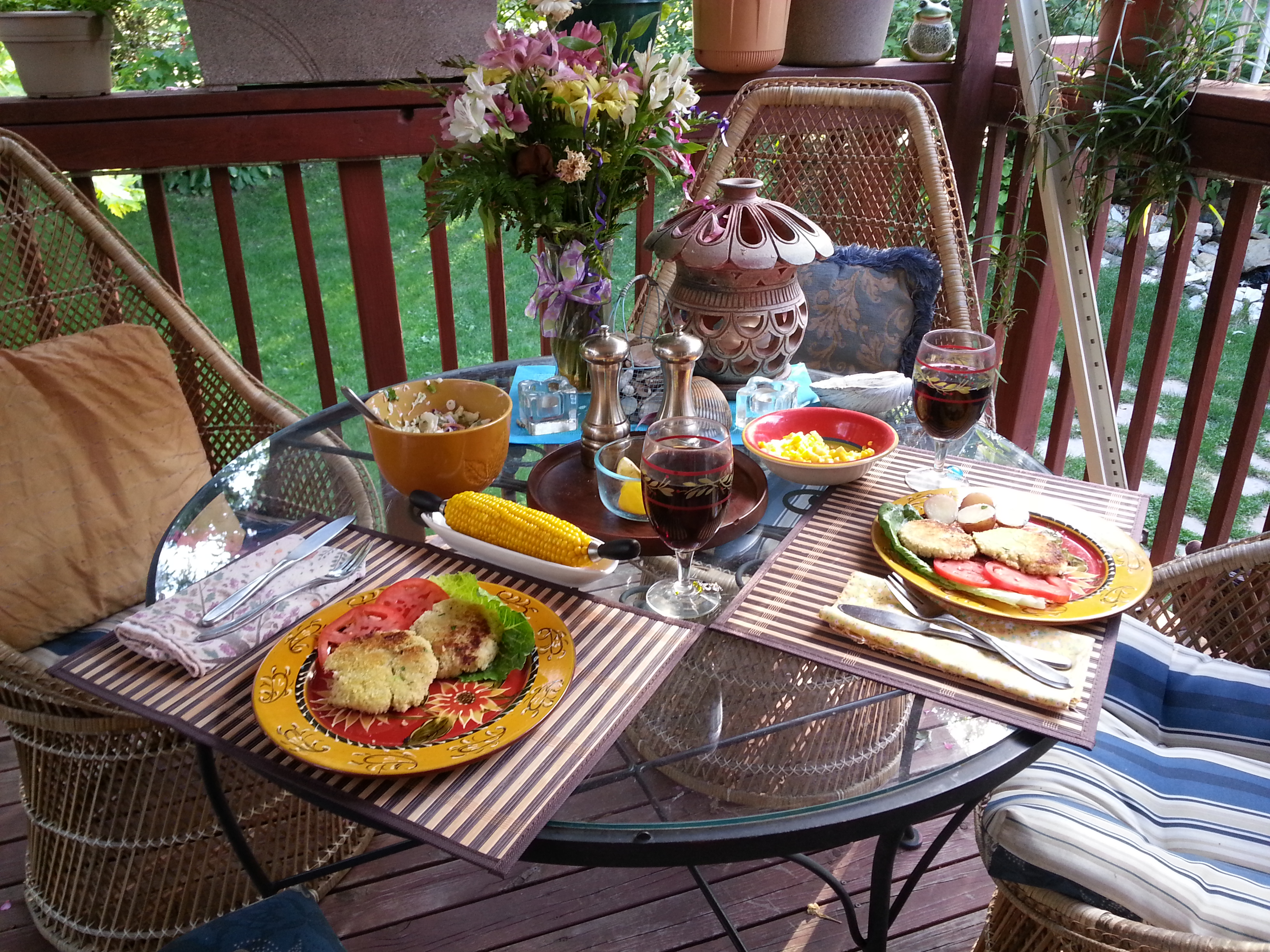 Tonight’s dinner is al fresco On the menu… Crab Cakes!