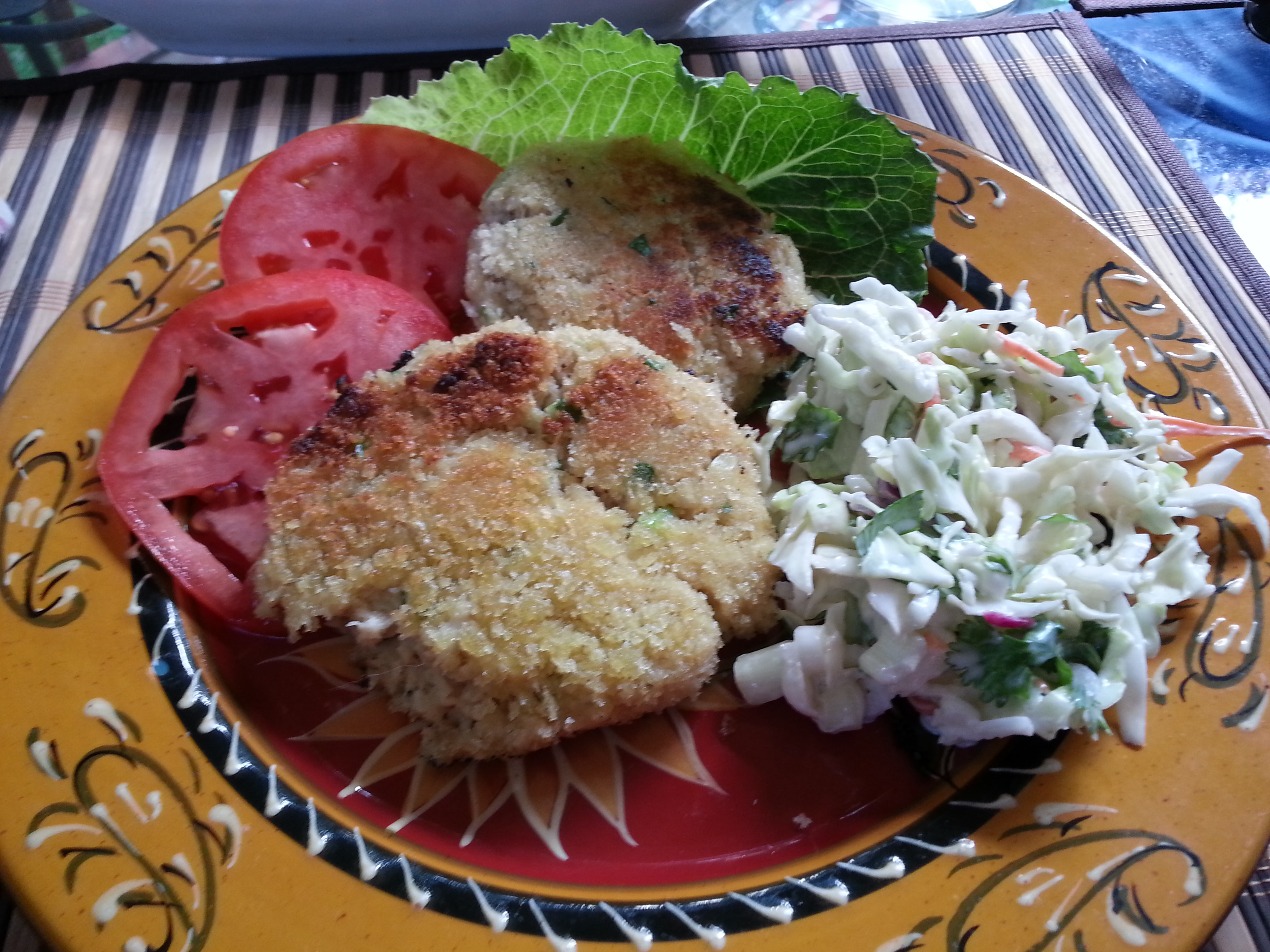 Along side these delicious crab cakes, Tequila Cole Slaw. This will be the best slaw you ever make! Add fresh corn, wine and Cheers!