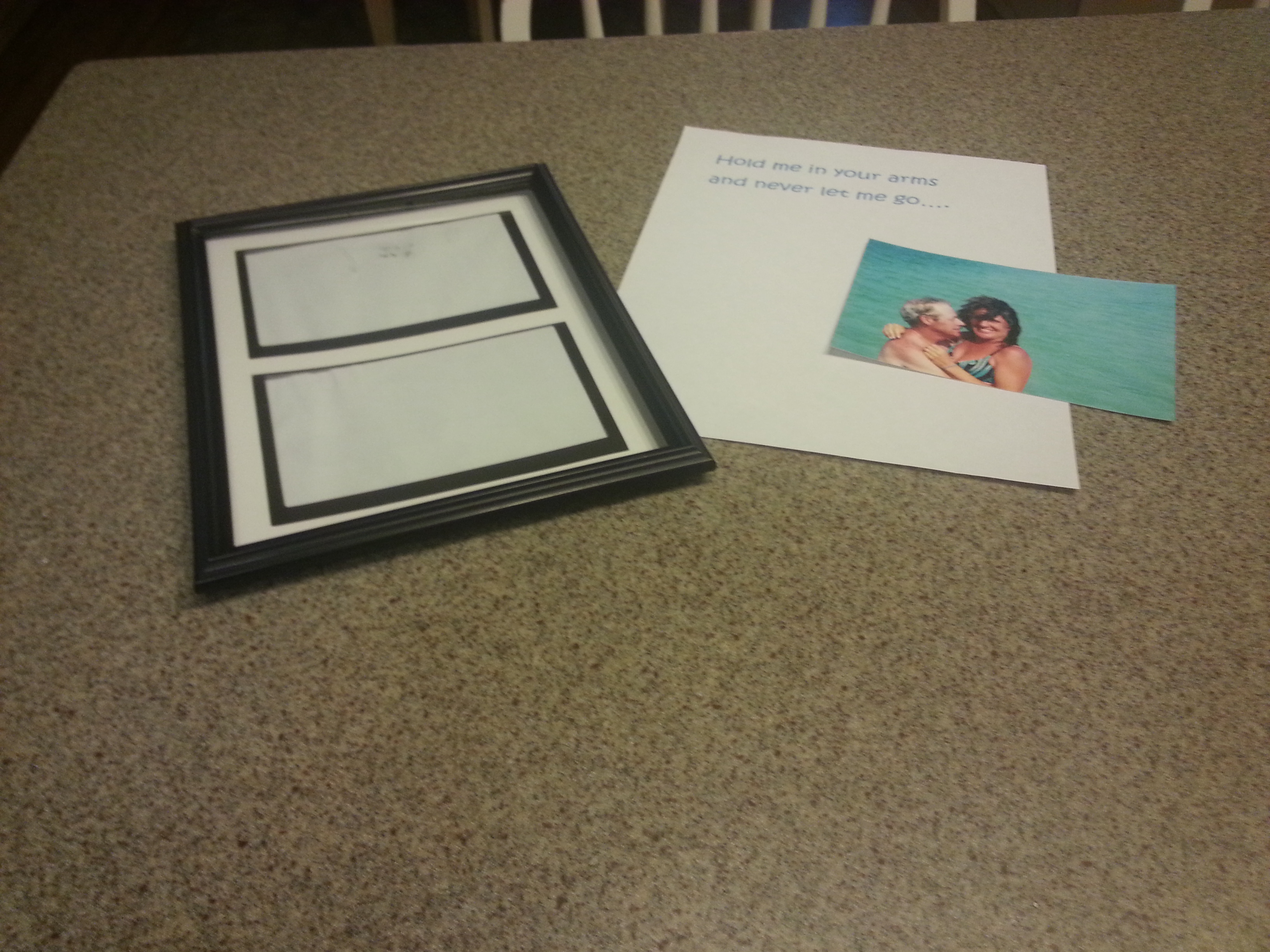 I grabbed several double frames at the Dollar Tree Dollar store, the picture and my caption.