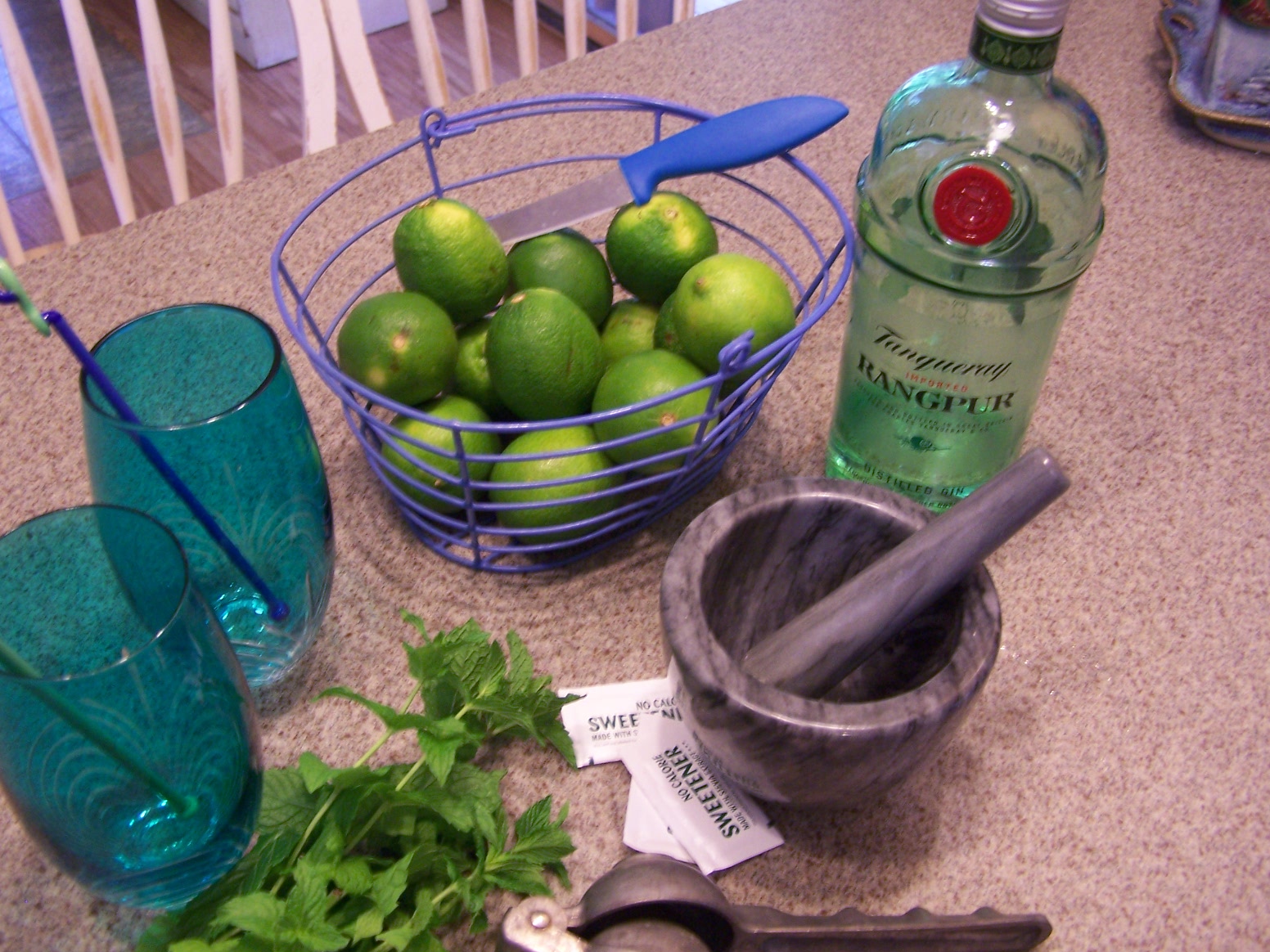 Rangpur, you say? Yes, Tanqueray’s distilled Gin made with rangpur limes and other botanicals- smooth limey goodness! Feel free to use a golden, smooth tequila in place of the gin on another day!