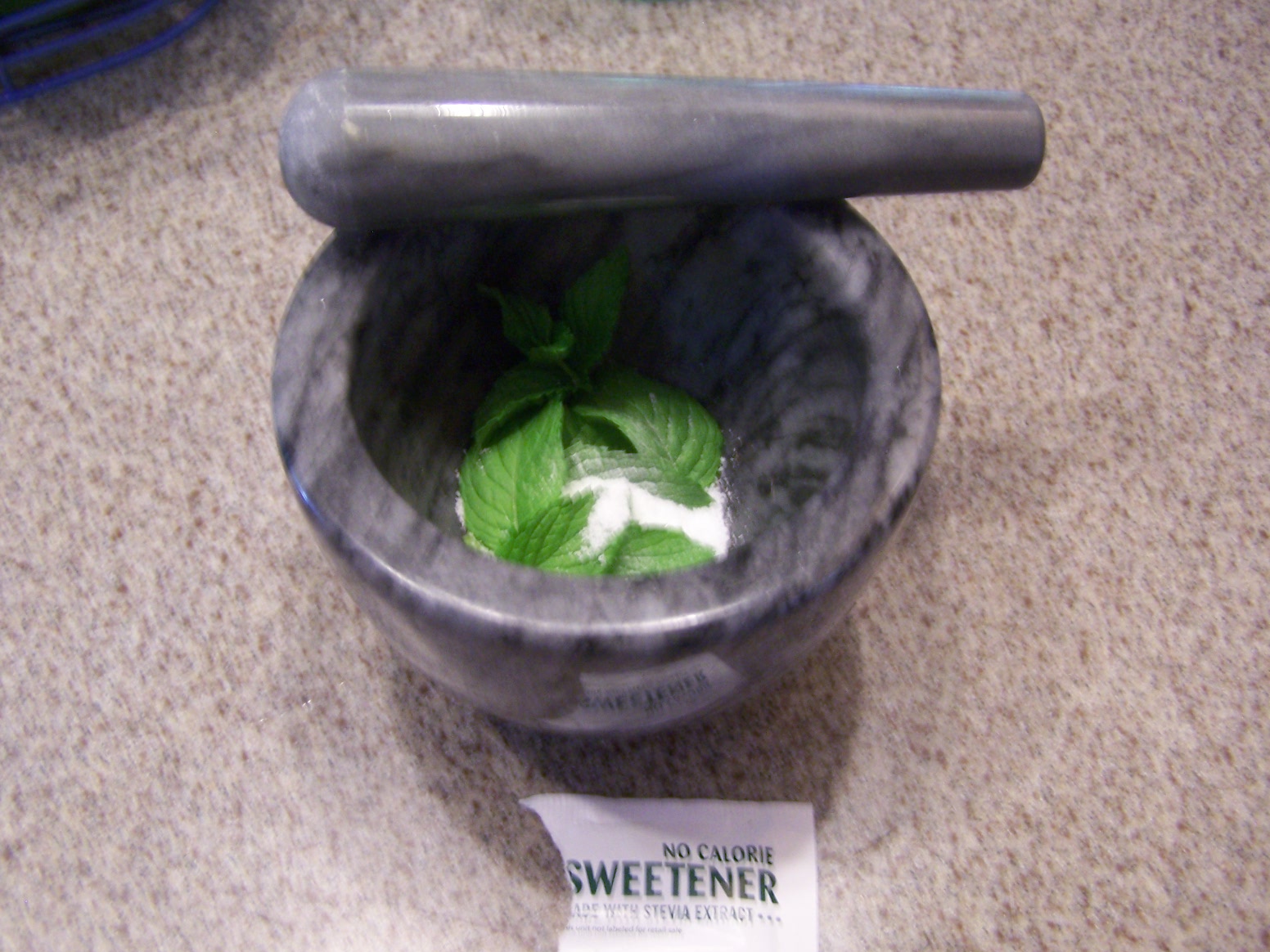 Mottle the fresh mint and sugar until well smashed- breathe in the fresh minty aroma, place in a beautiful glass.