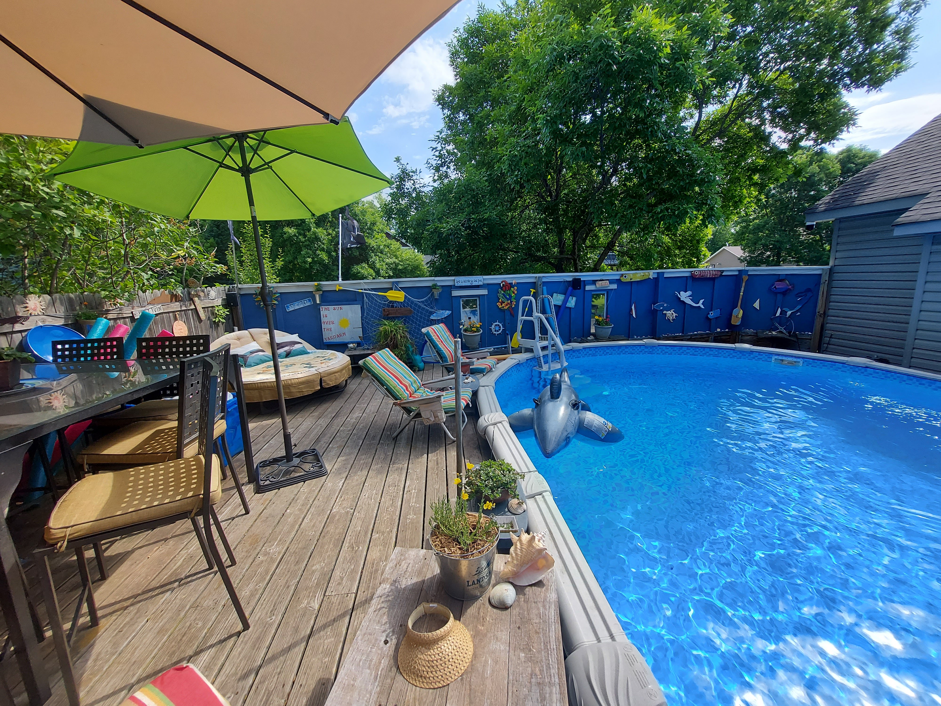 You may not know this, but it gets hot here in the summer! As I write this in mid-June, we are on a 10 plus day streak over over 90 degree heat with tropical humidity. Many years ago, we installed a pool- good thing! We spend our tropical Minnesota days there. We call it Sharky’s Resort! (more on that later!)