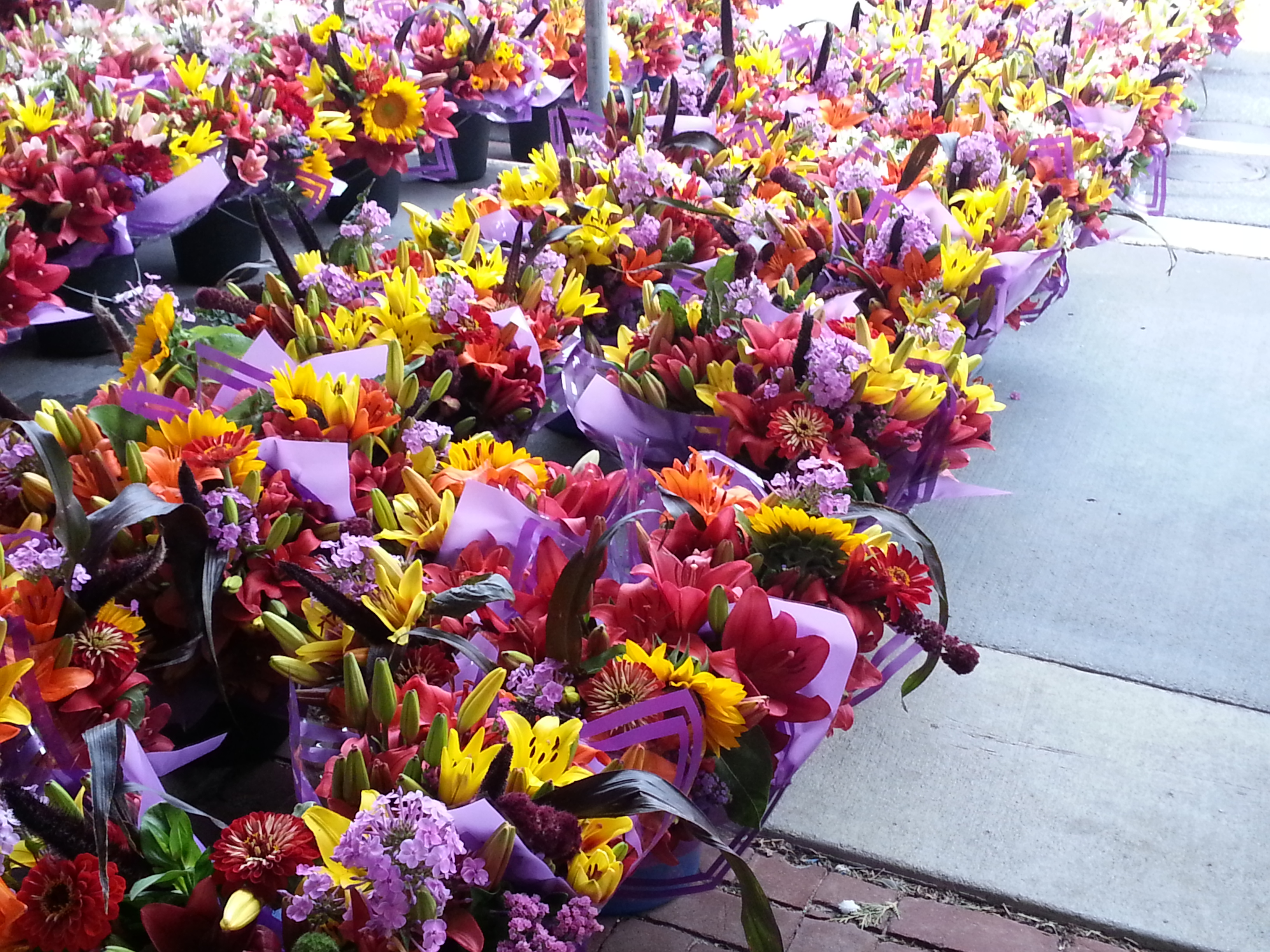 Unforgettable flowers! Grab a bouquet, select a second one! Place in your basket. Yes, that is perfect! Continue to saunter through the Market. Except free samples, smell, touch, admire, hold hands! Maybe another cup of fresh brewed coffee, a herbed tea, a pastie!